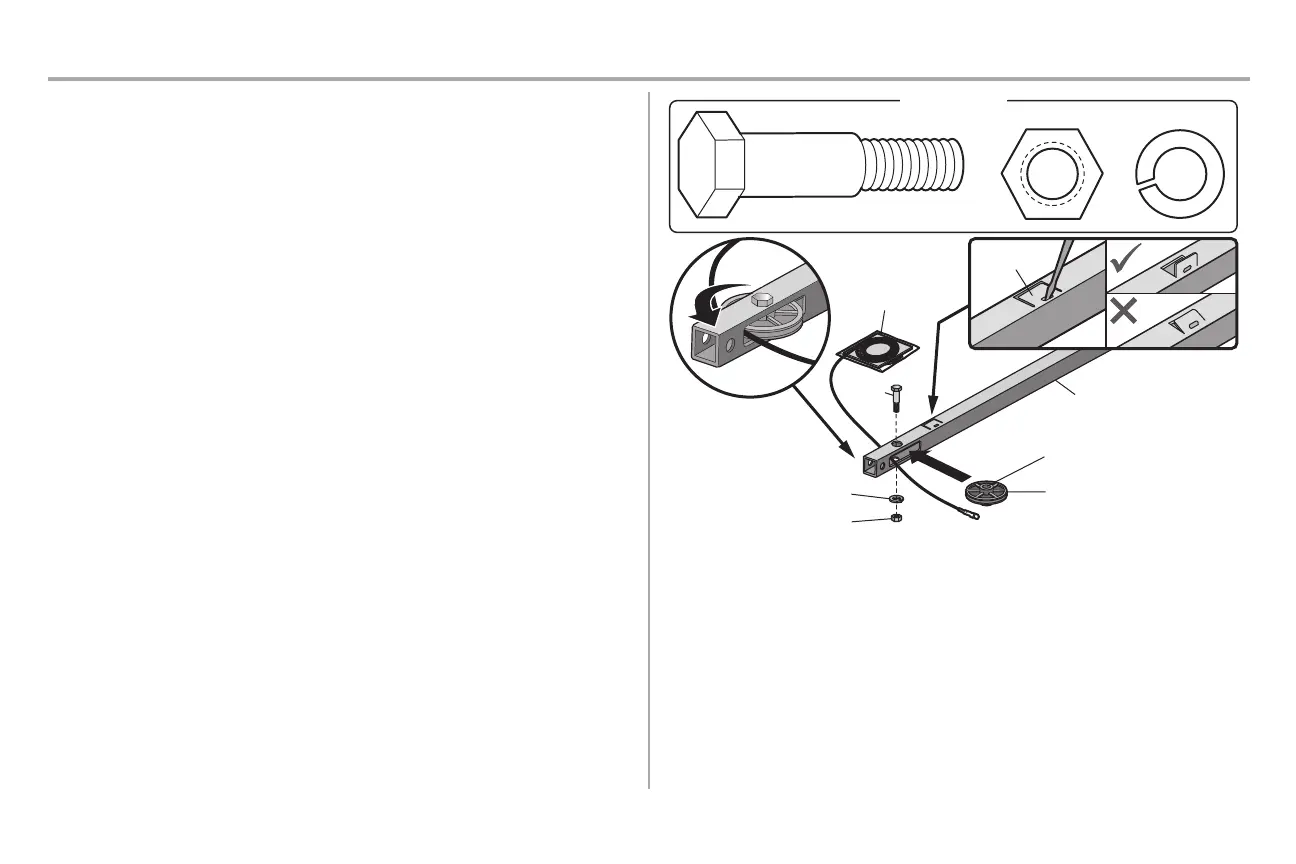 4. Insérez le boulon de tension par le haut, à travers le rail et la poulie. Serrez avec une