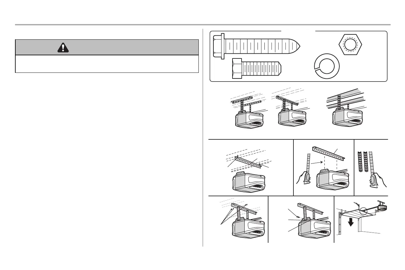 5. Fixez l’ouvre-porte de garage aux supports de suspension à l’aide des boulons à six pans,