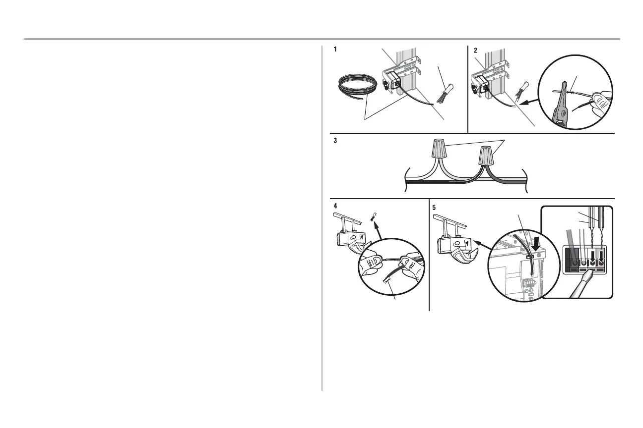 4. Au niveau de l’ouvre-porte de garage, dénudez l’extrémité des ls connectés auparavant aux
