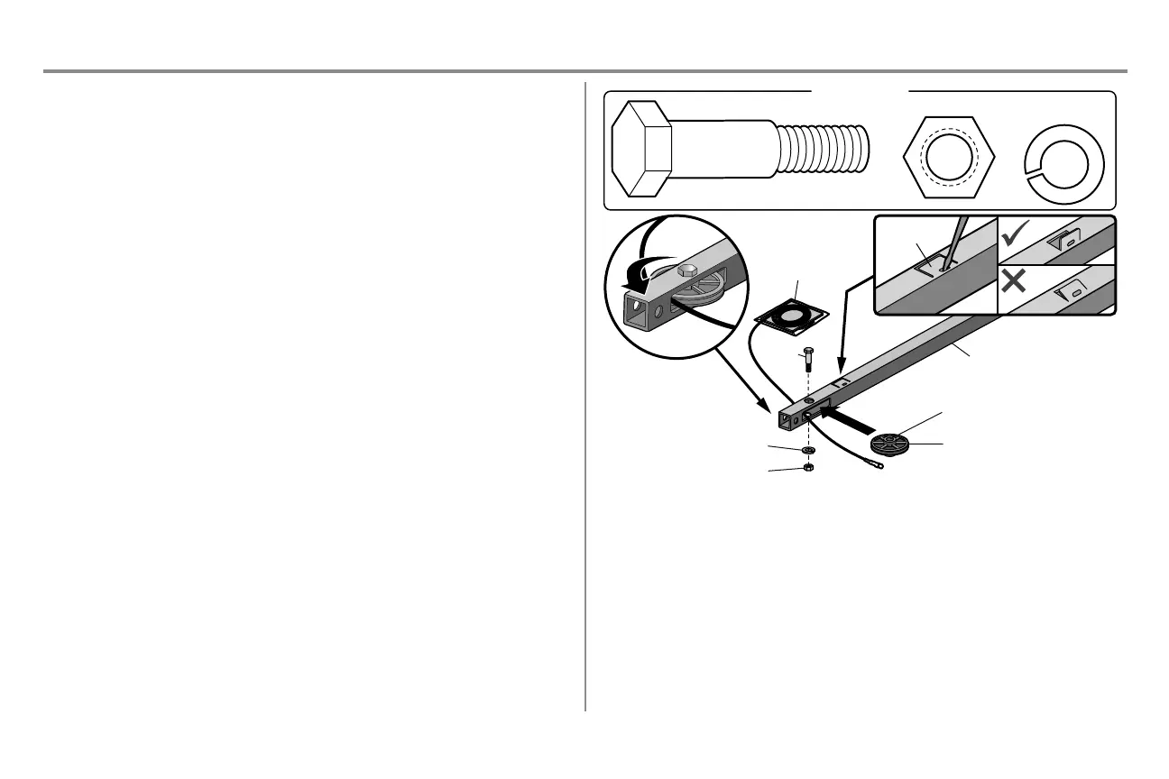 4. Inserte el perno loco desde la parte superior y a través del riel y la polea. Apriete con una arandela y una