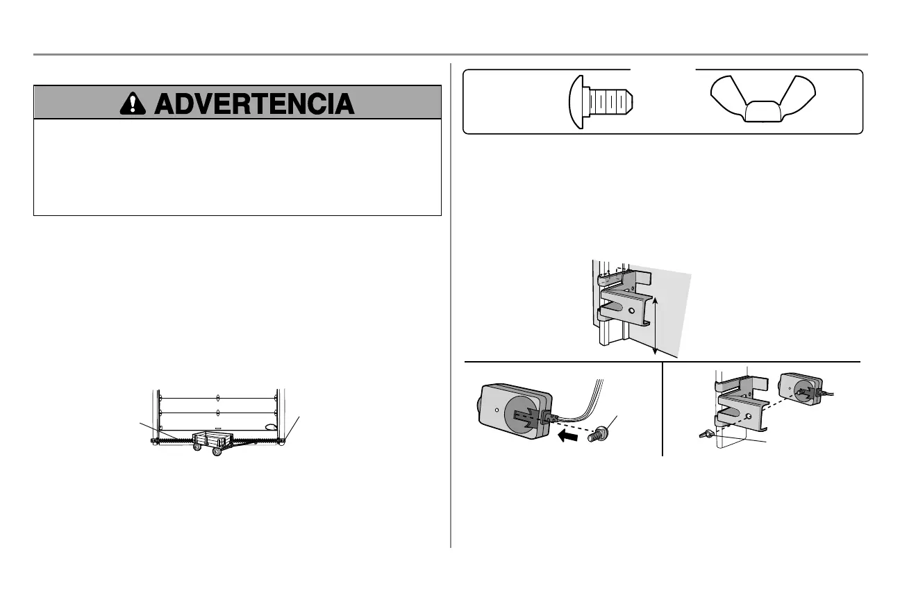 deben estar a más de 15 cm (6 pulgadas) por encima del piso. Si el carril de la puerta no sostiene firmemente la