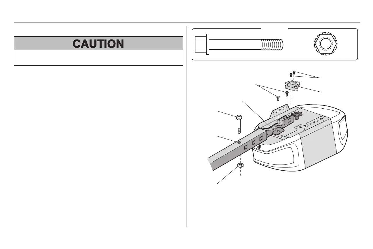 To avoid SERIOUS damage to garage door opener, use ONLY those bolts/fasteners mounted in the