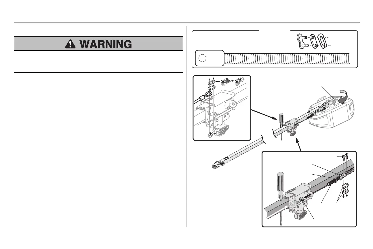 rail toward the motor unit around the sprocket and continuing to the trolley assembly. The