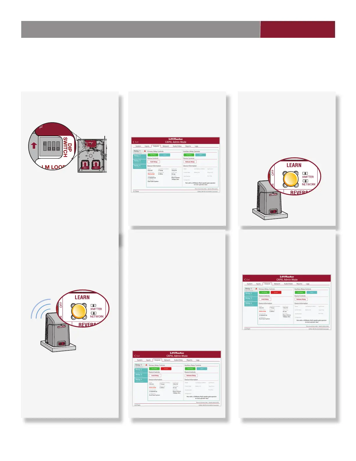 chaque relais primaire et auxiliaire. Dans le cas de barrières à deux vantaux, programmer le CAPXL / CAPXLV à l’actionneur primaire.