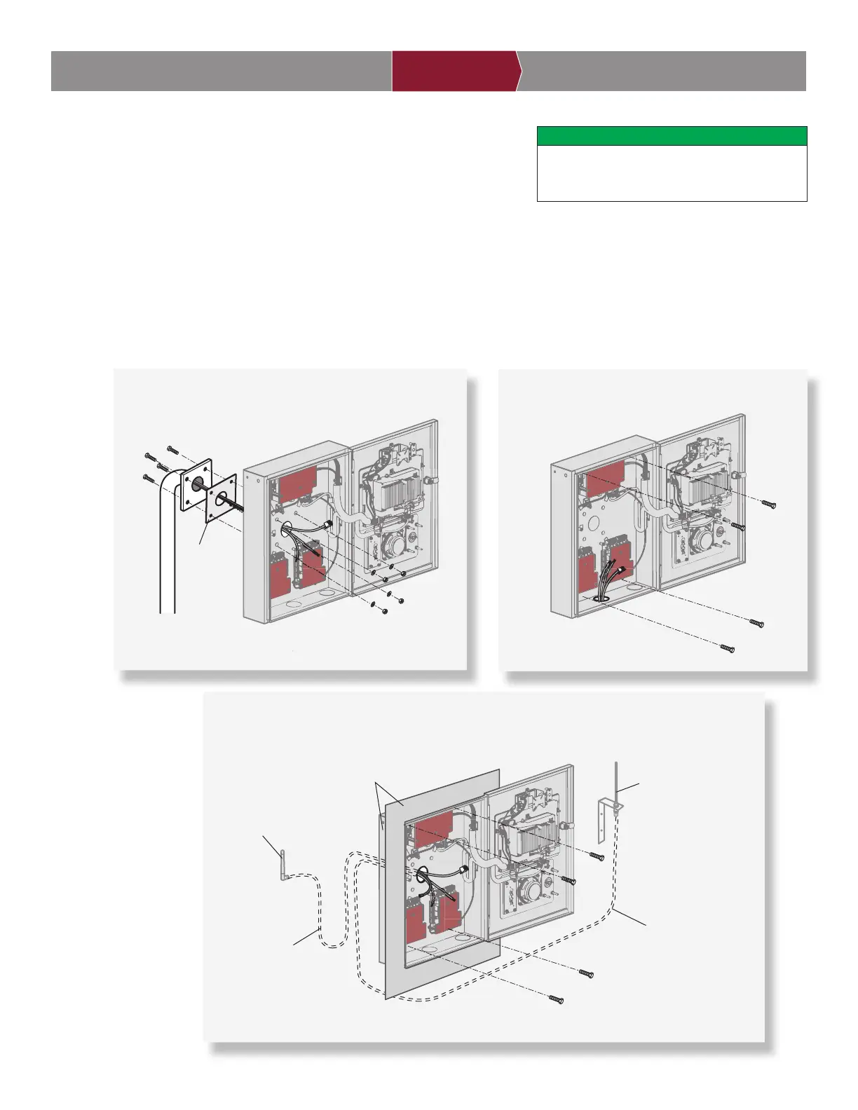 o a un pedestal con el herraje adecuado e intentando pasar los cables por los orifi cios precortados adecuados. Se
