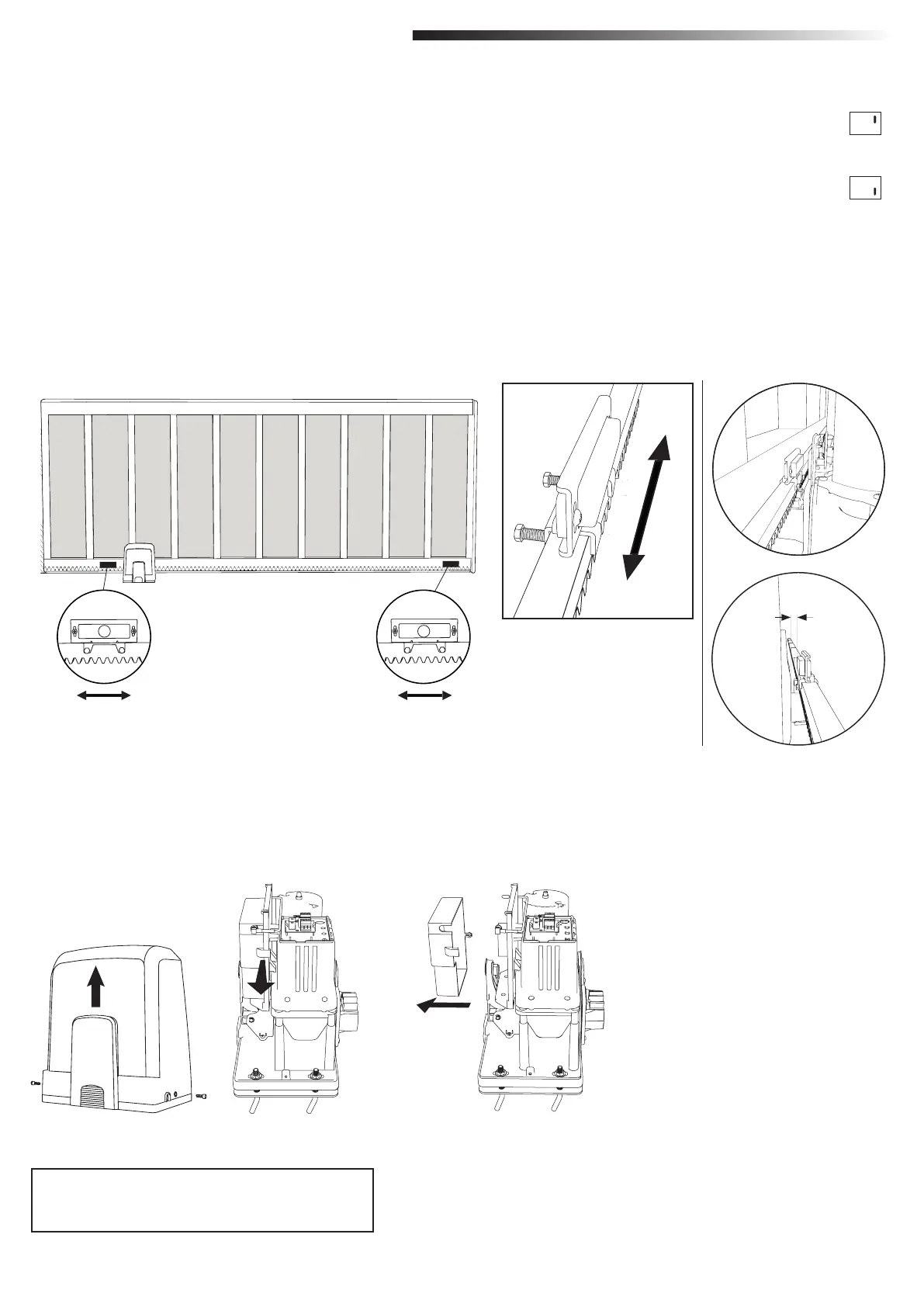 3. Pourl’automatismeàdéverrouillagemanuel,déplacezleportaildansladirectionOUVERTpouratteindrel’aimantxésurlescrémaillères.Assurez-vousqueladistanceentre