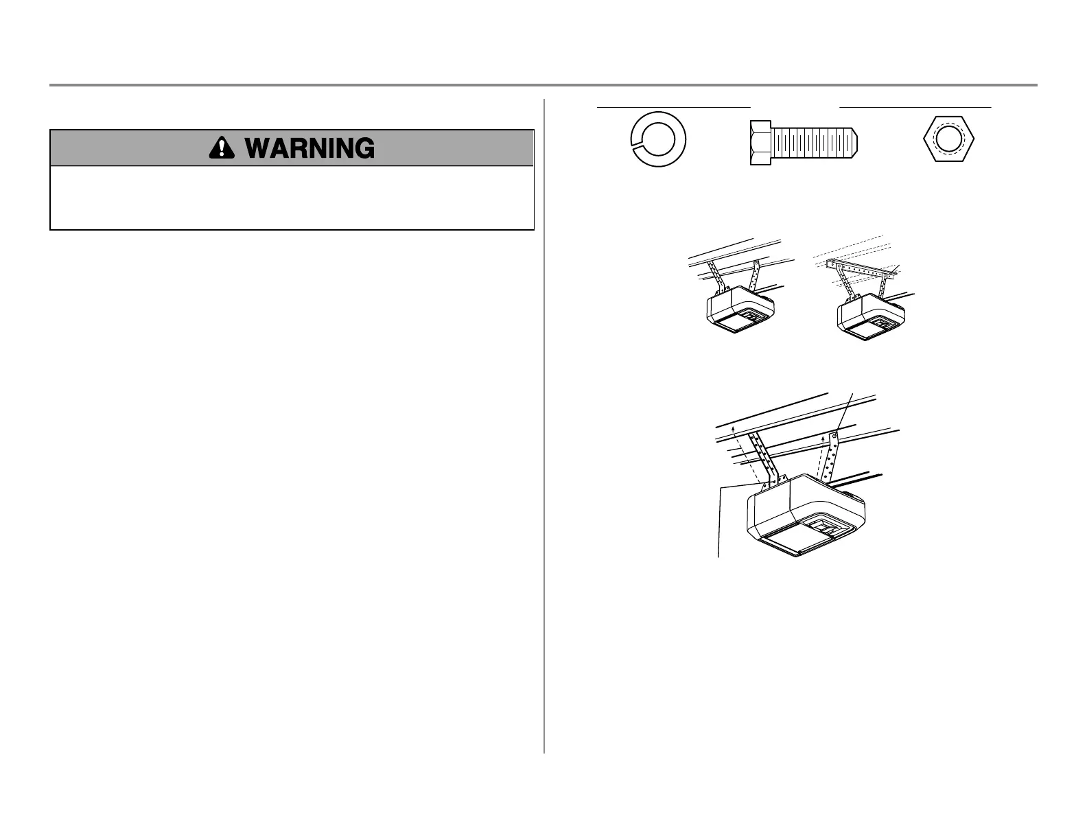 sturdy metal bracket to structural supports before installing the opener. This bracket and