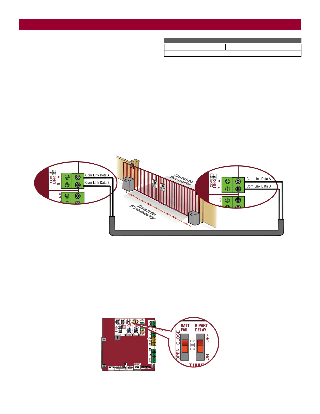 gate to close before the other. The operator with the LOCK/BIPART DELAY switch ON will delay from the close limit when opening and be the first to