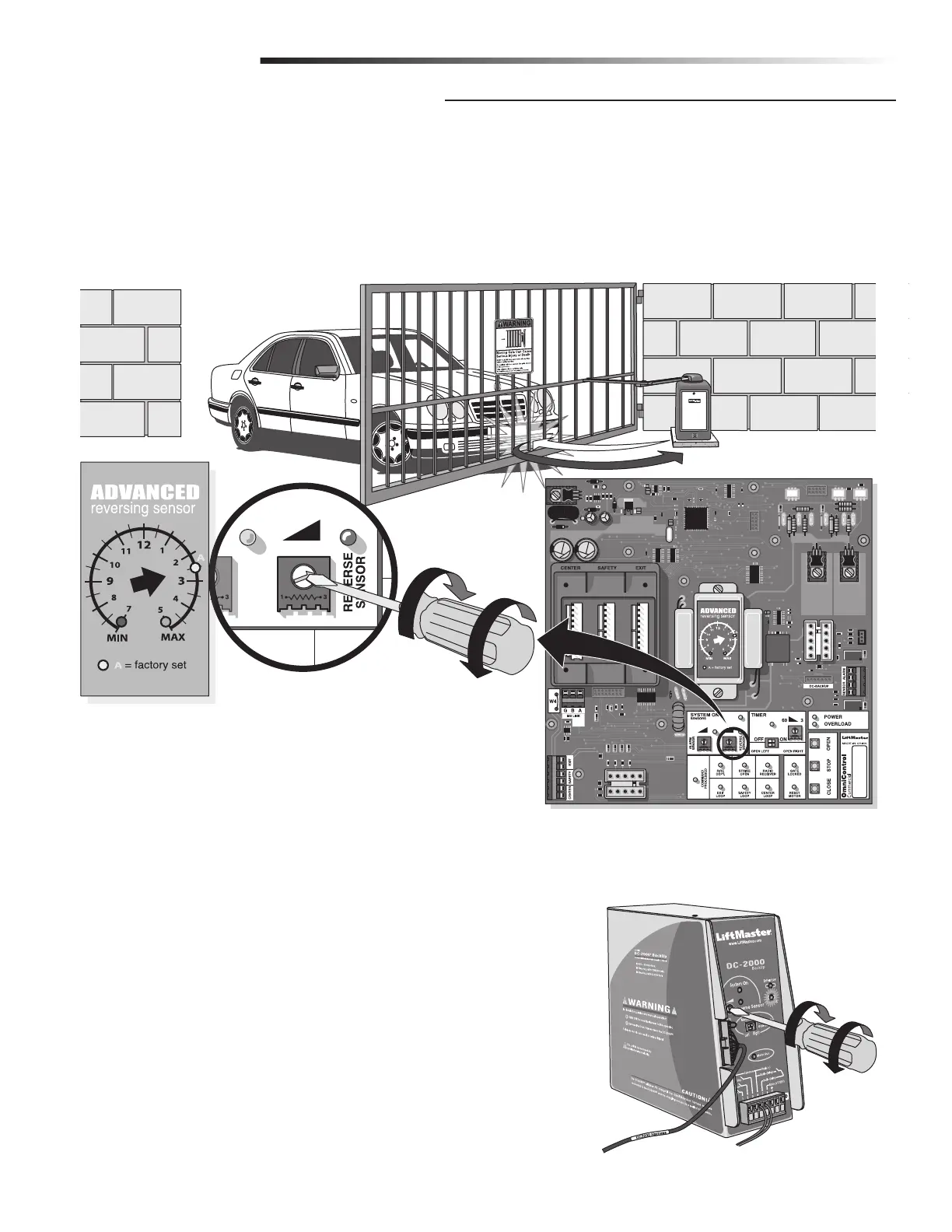 Adjust the “Reverse Sensor” on the OmniControl™ board. Alarm Sensor does not need to be adjusted except where noted below.