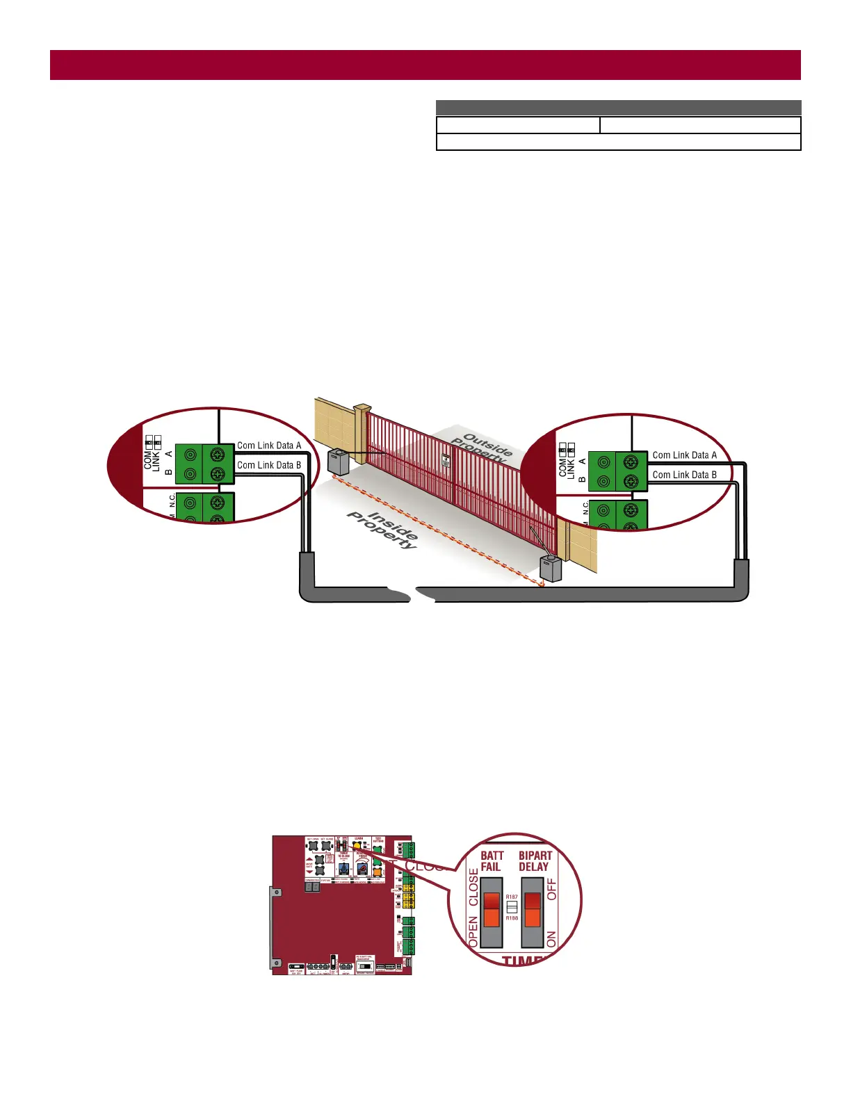 gate to close before the other. The operator with the LOCK/BIPART DELAY switch ON will delay from the close limit when opening and be the first to