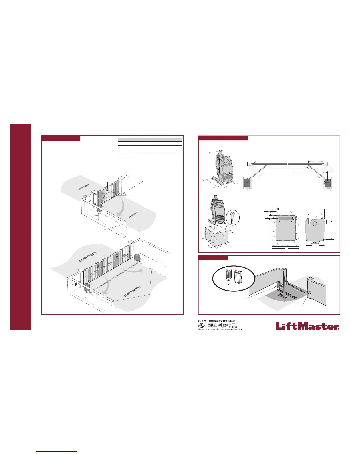 OPERATOR DIMENSIONS DETERMINE LOCATION FOR CONCRETE PAD AND OPERATOR