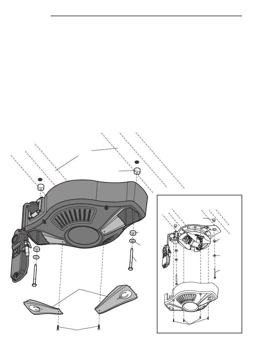 6. Colocar un aislador grande de caucho en cada tornillo, detrás de la placa de montaje.