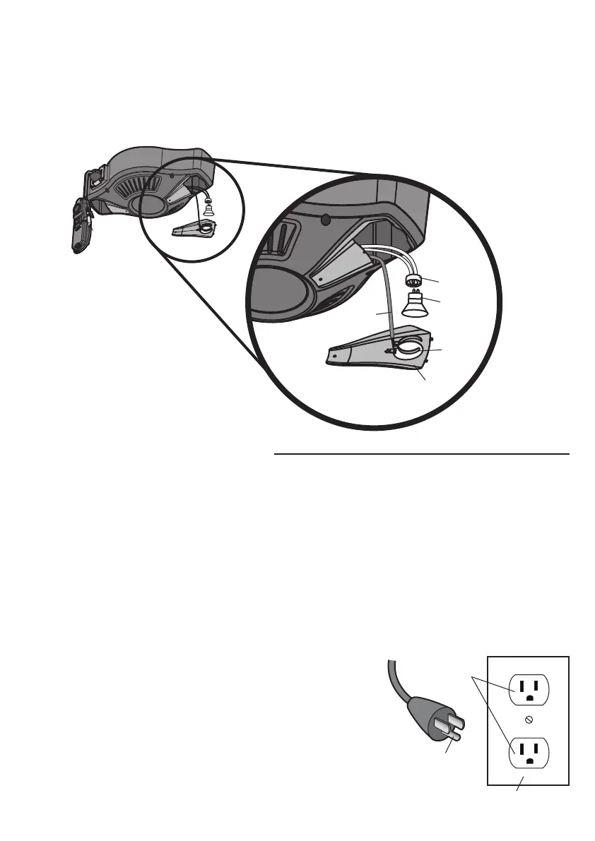 8. Enroscar una lámpara (no suministrada con la unidad) en el receptáculo. Introducir la lámpara en el retén en la tapa