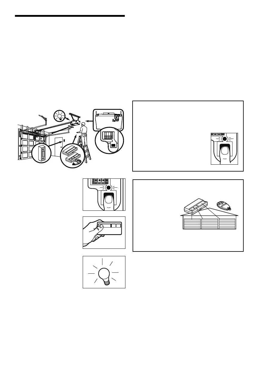 Your garage door opener has already been programmed at the factory to operate with your hand-held remote control.