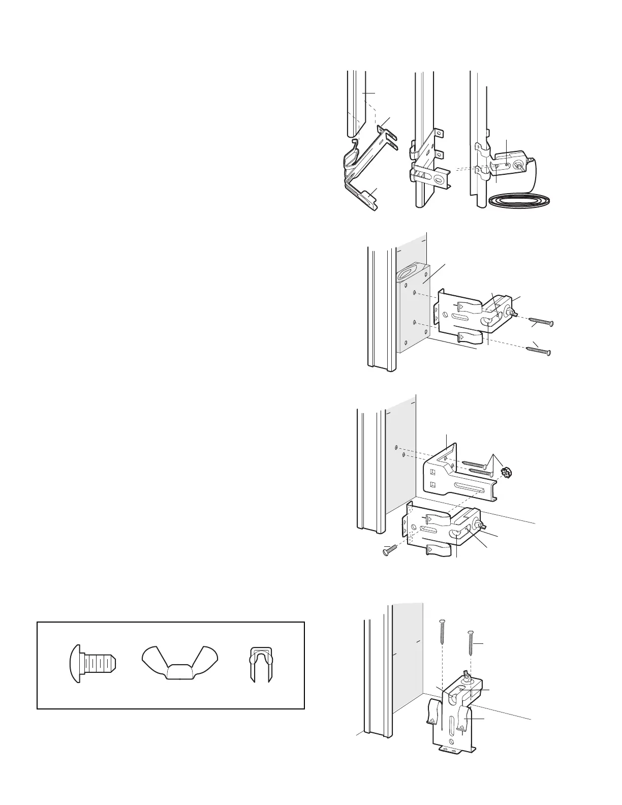 • Attach brackets to wall with lag screws (Not provided).