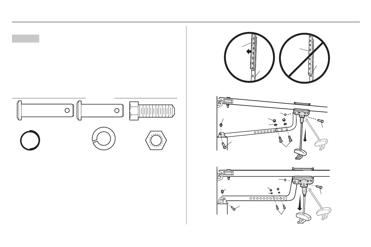 3. Fixer la biellette droite sur le support de porte à l'aide d'un axe de chape. Faire tenir l'axe de chape avec un