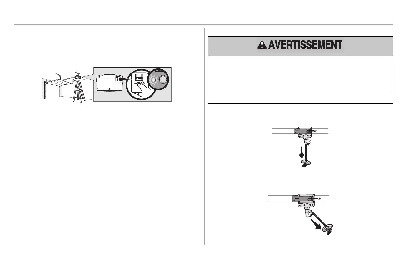 1. Appuyer sur le bouton LEARN de l'ouvre-porte de garage et le maintenir enfoncé jusqu’à ce que le témoin DEL