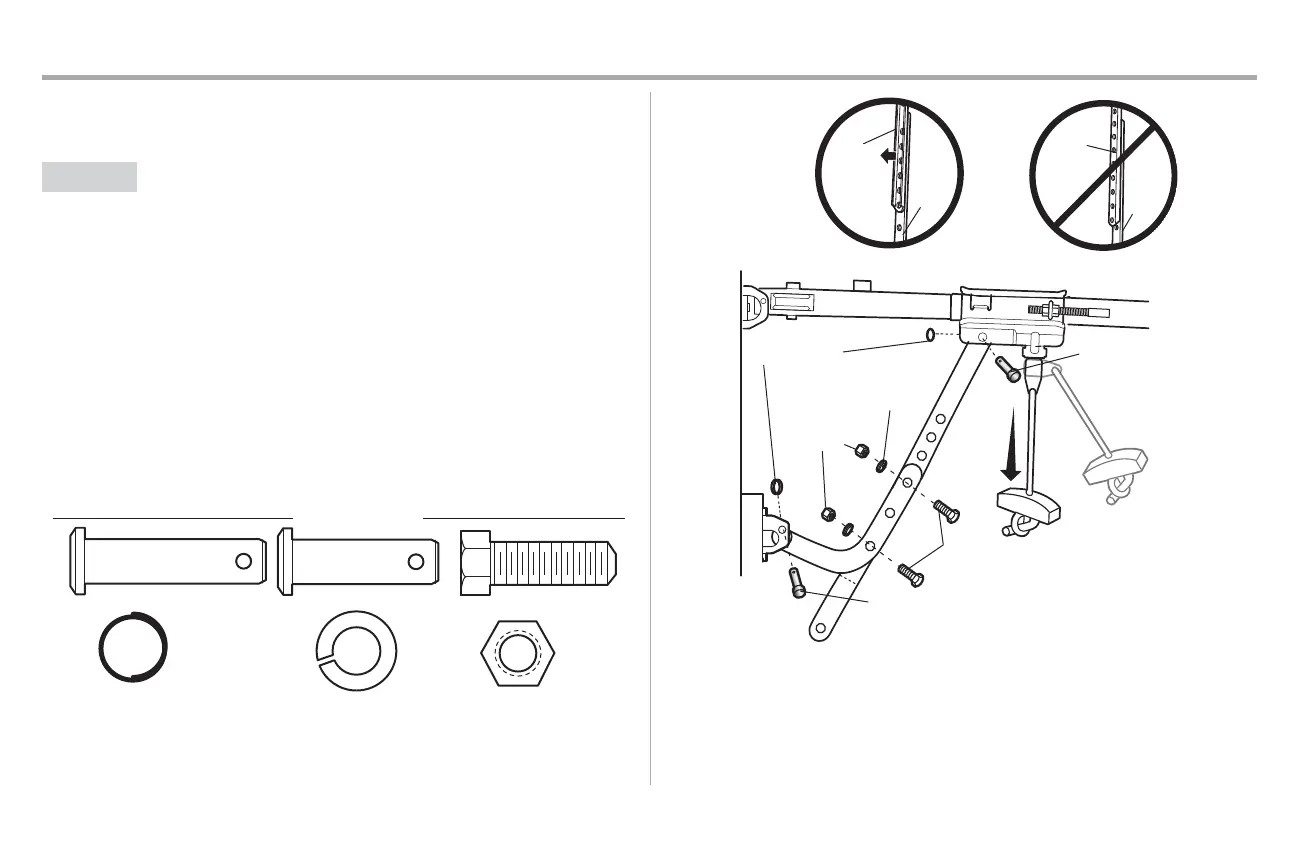 2. Attach the straightdoor arm to the outer trolley using the clevis pin. Secure with the ring