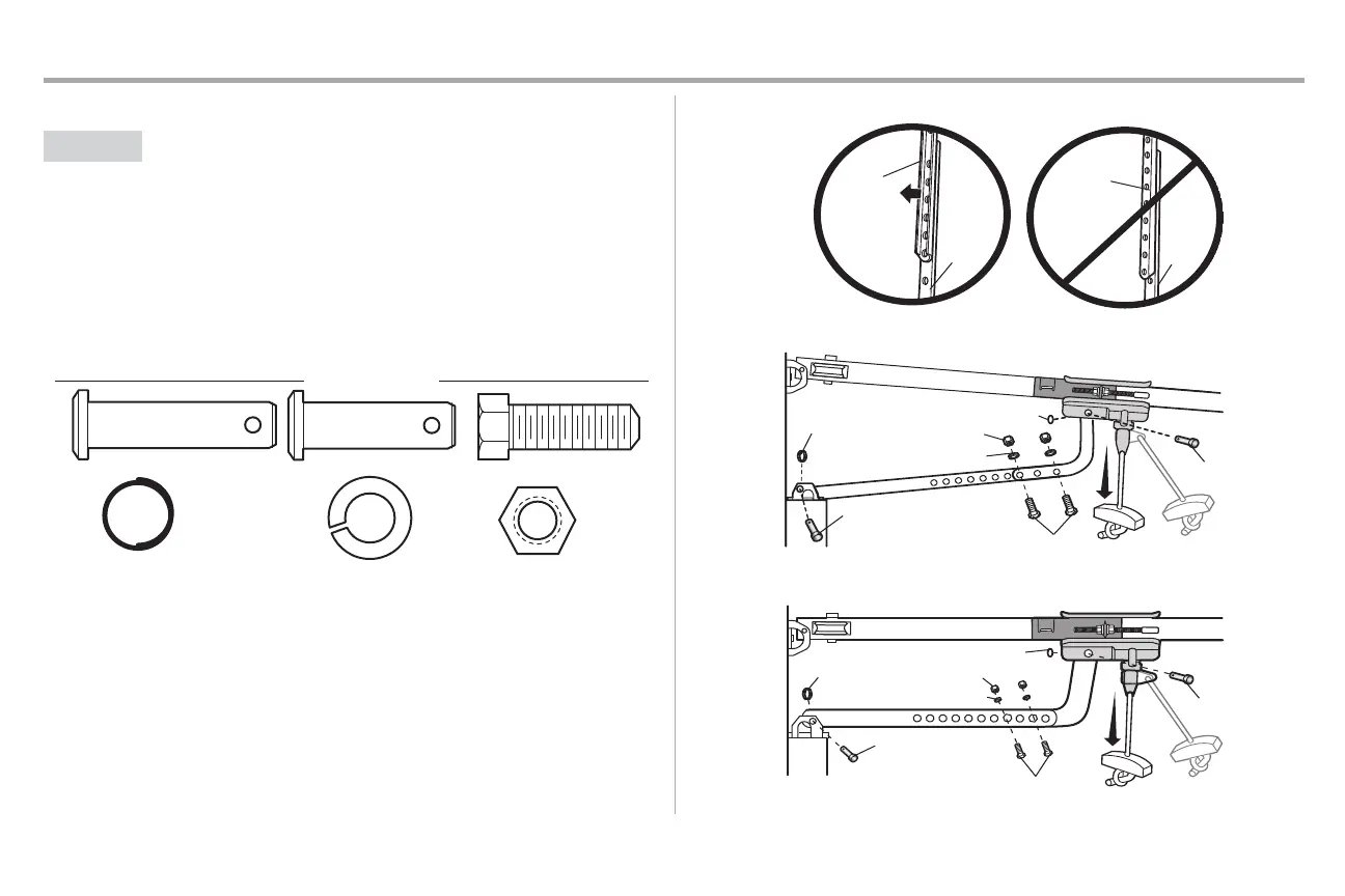 4. Attach the curved door arm to the trolley using the clevis pin. Secure with the ring fastener.