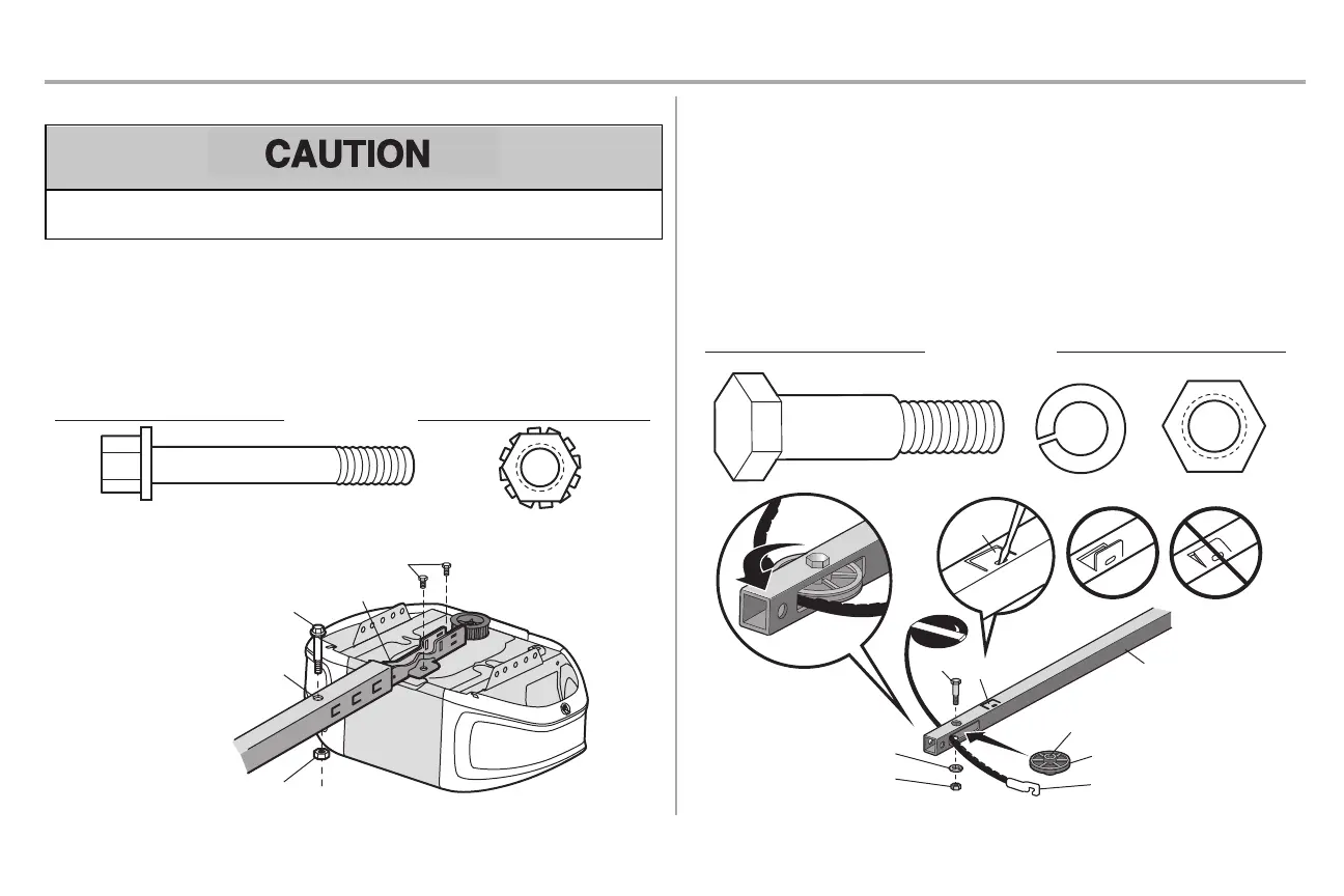 To avoid SERIOUS damage to garage door opener,use ONLY those bolts/fasteners mounted in the