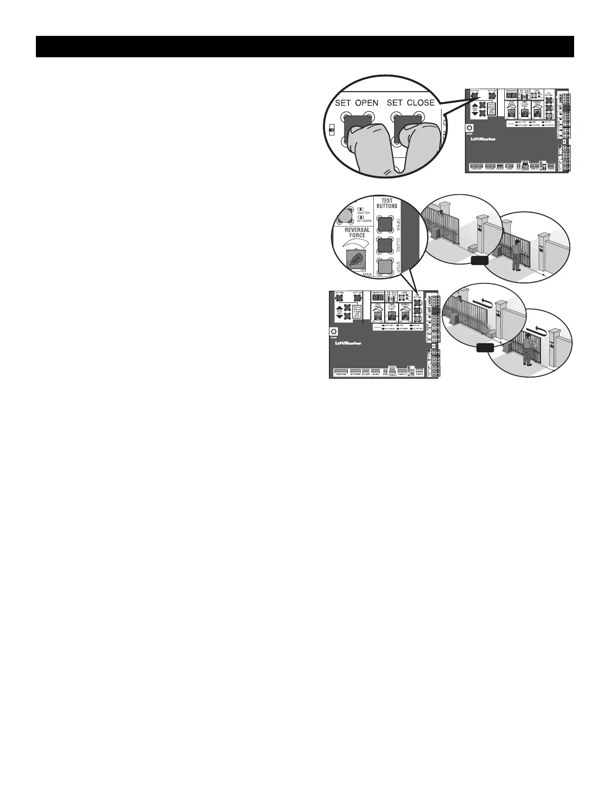 1. Open and close the gate with the TEST BUTTONS, ensuring that the