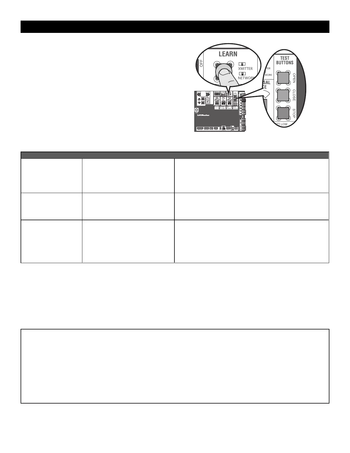 The operator will automatically exit learn mode (operator will beep and green XMITTER LED will go out) if programming is successful. To program