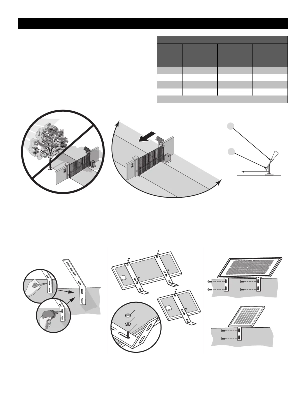 Solar panel(s) MUST be installed facing south. Use a compass to determine direction. Below are general instructions for installing the solar panel(s). Your