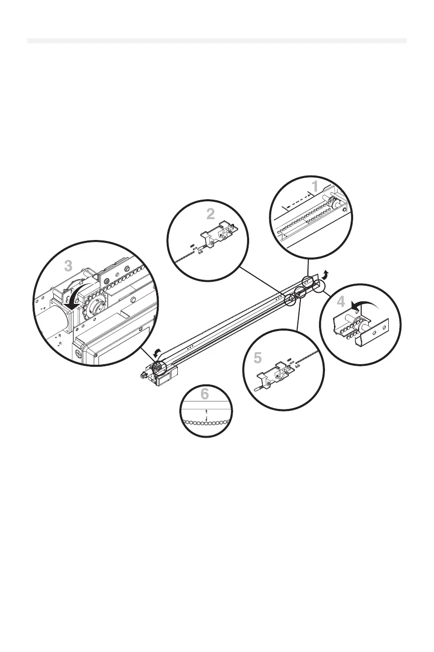 3. Run the chain along the track to the operator. Wrap the chain around the operator drive sprocket.