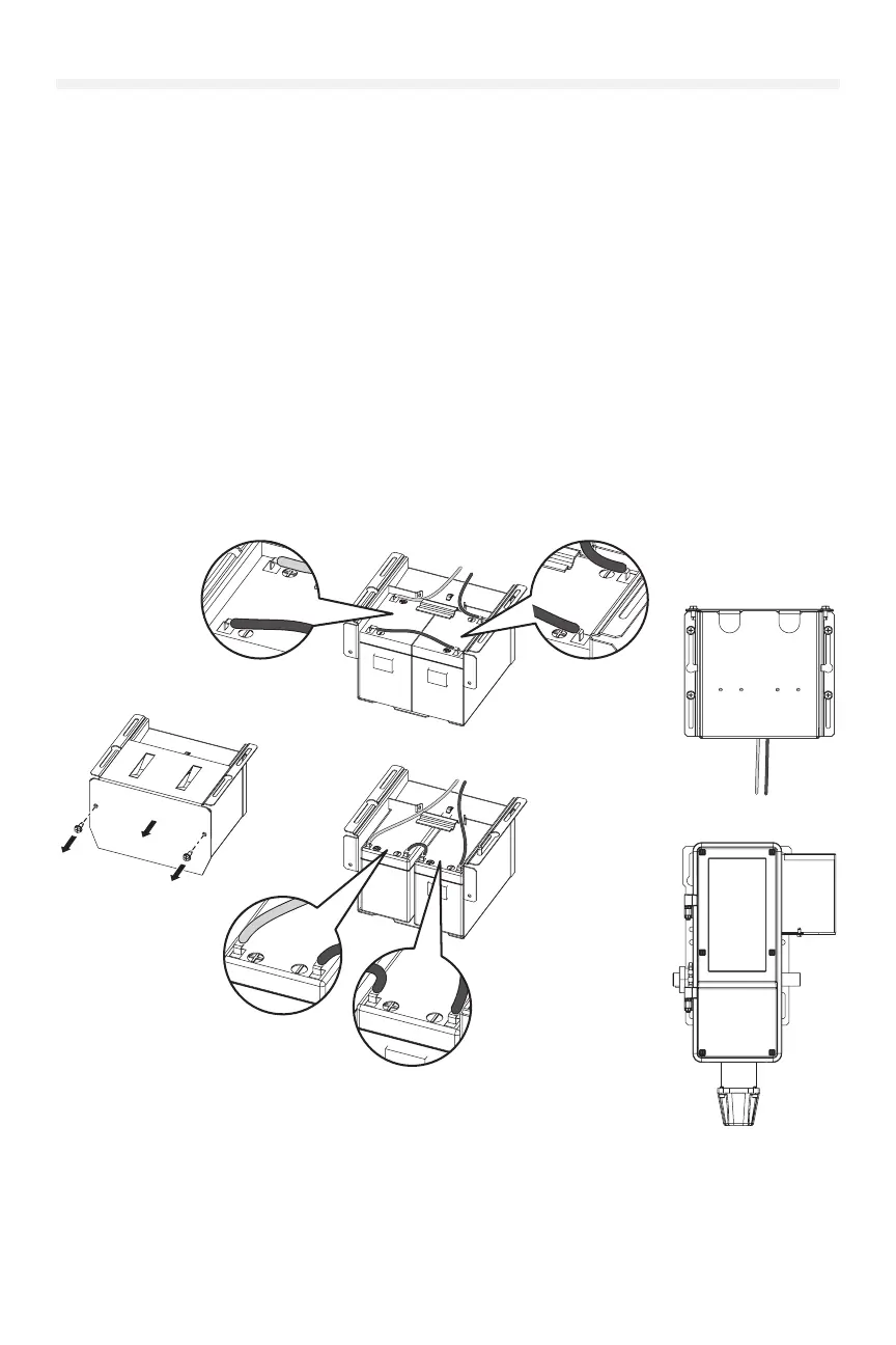 4. Using supplied screws, mount battery enclosure to operator (OR) in an appropriate alternate location and ensure