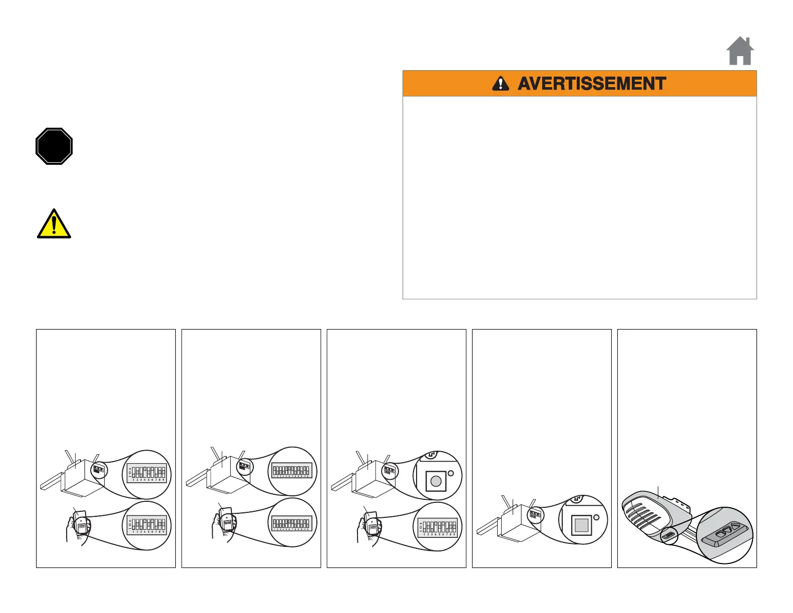 Suivre les instructions selon le type de votre ouvre-porte de garage. REMARQUE : Votre moteur et/ou la télécommande pourraient avoir une autre apparence.