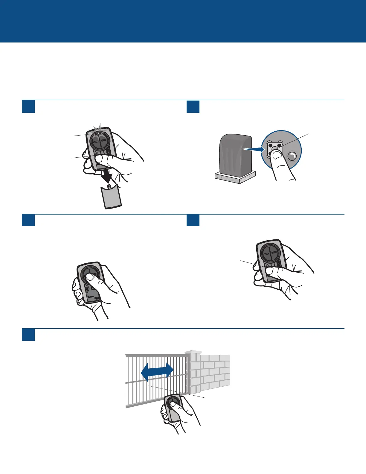Tester la télécommande en enfonçant le bouton. Si l’actionneur de portail ne s’active pas, répéter les étapes de programmation