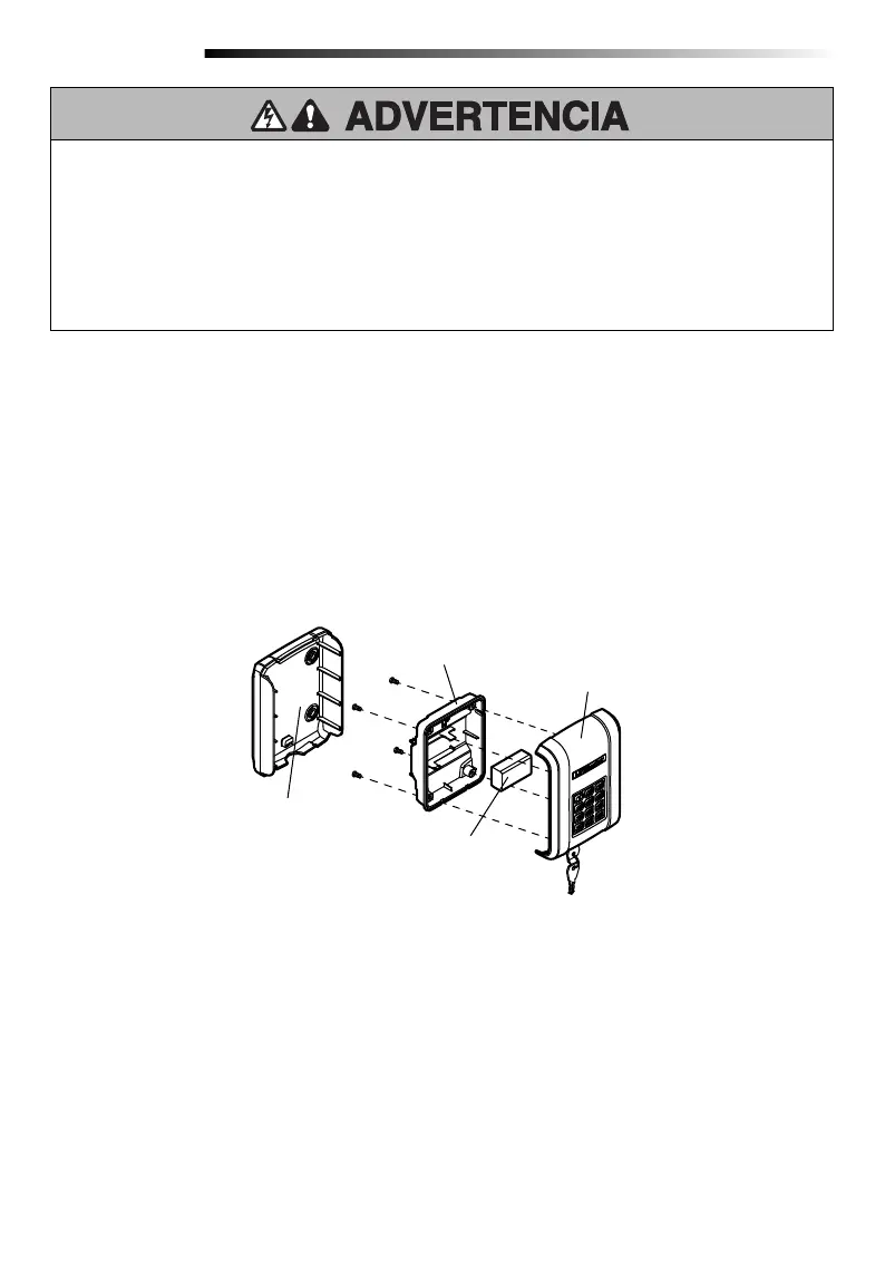 de la puerta para operar los controles. El lugar de montaje debe ser en línea de la vista de la cancela en movimiento.