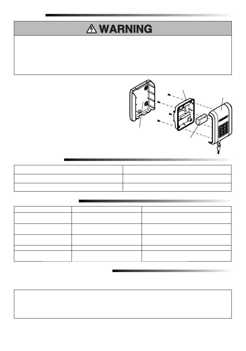 prohibited, except for changing the code setting or replacing the battery. THERE ARE NO OTHER USER SERVICEABLE PARTS.