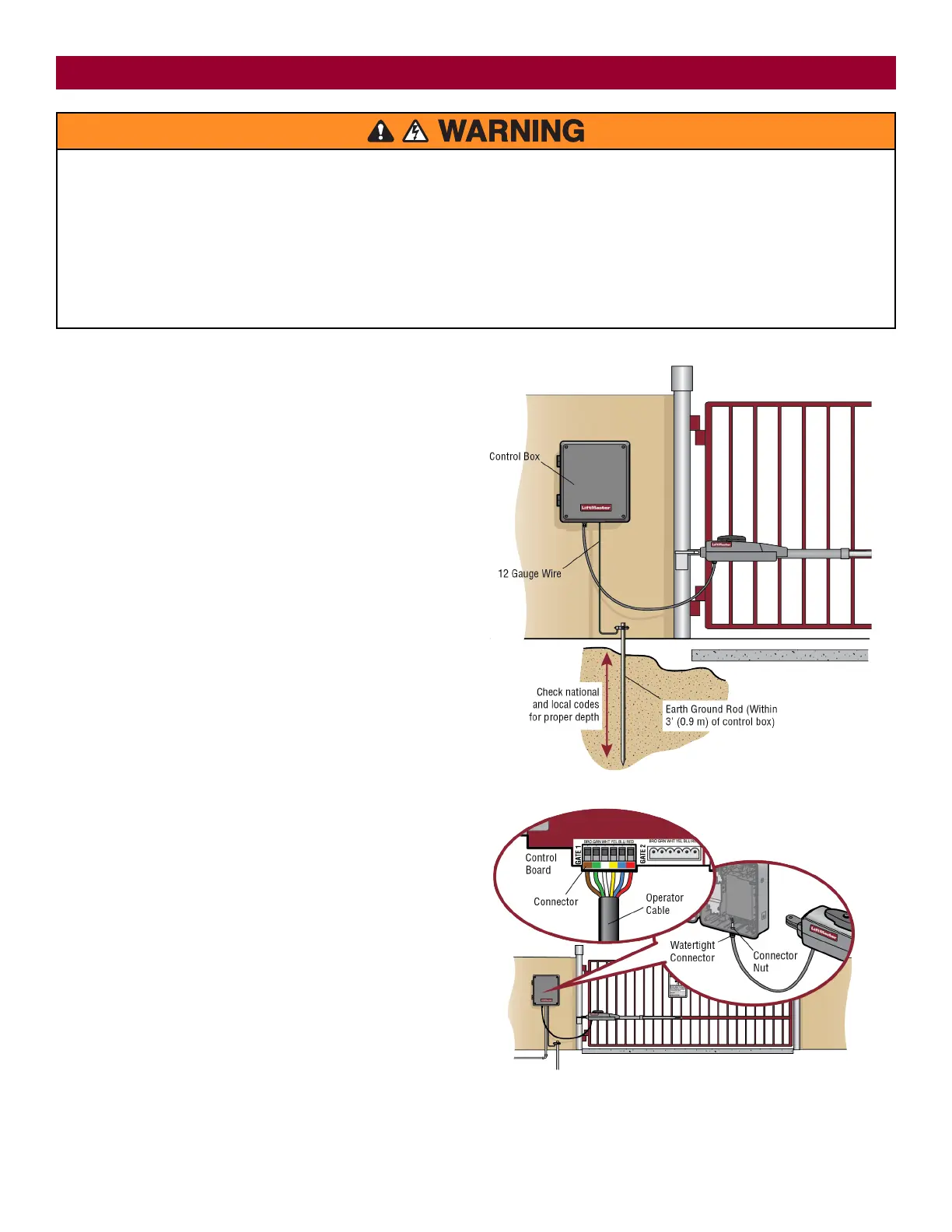 1. Install the earth ground rod within 3 feet (.9 m) of the operator.
