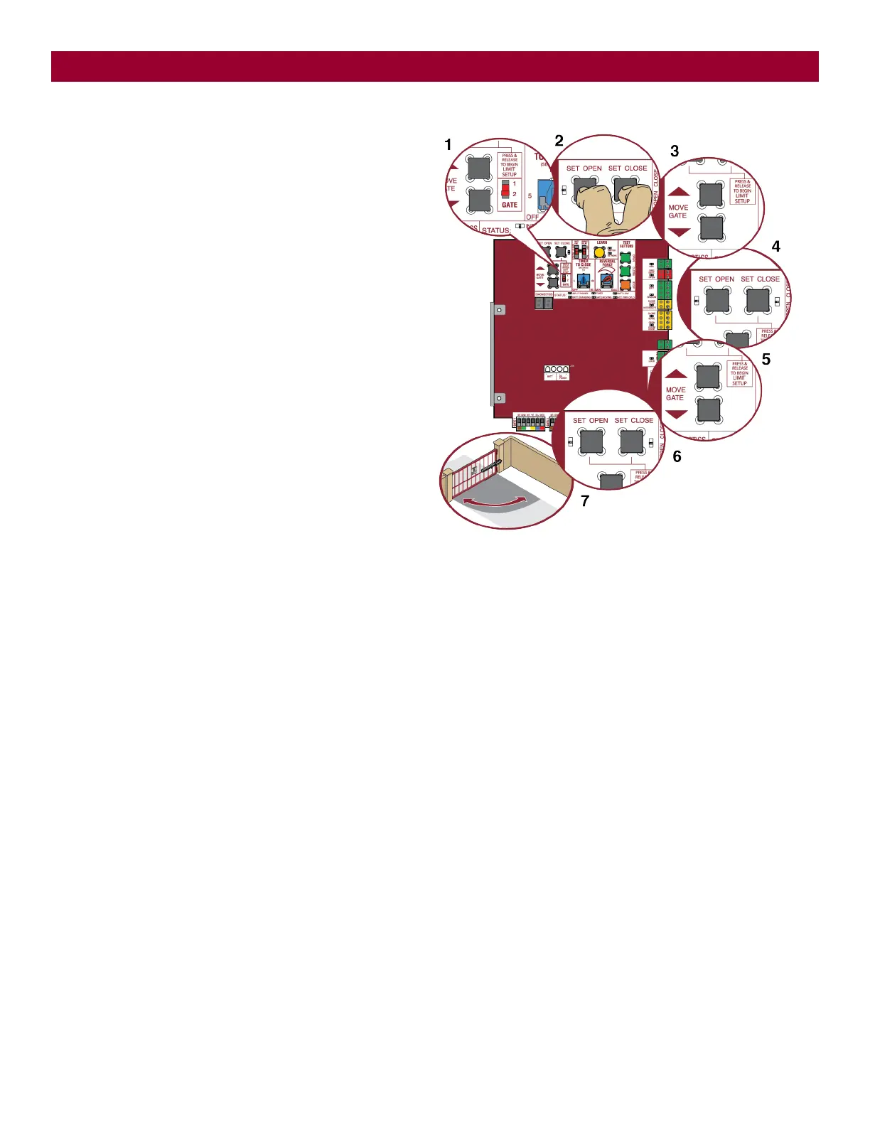 7. Cycle the gate open and close using the TEST BUTTONS. This