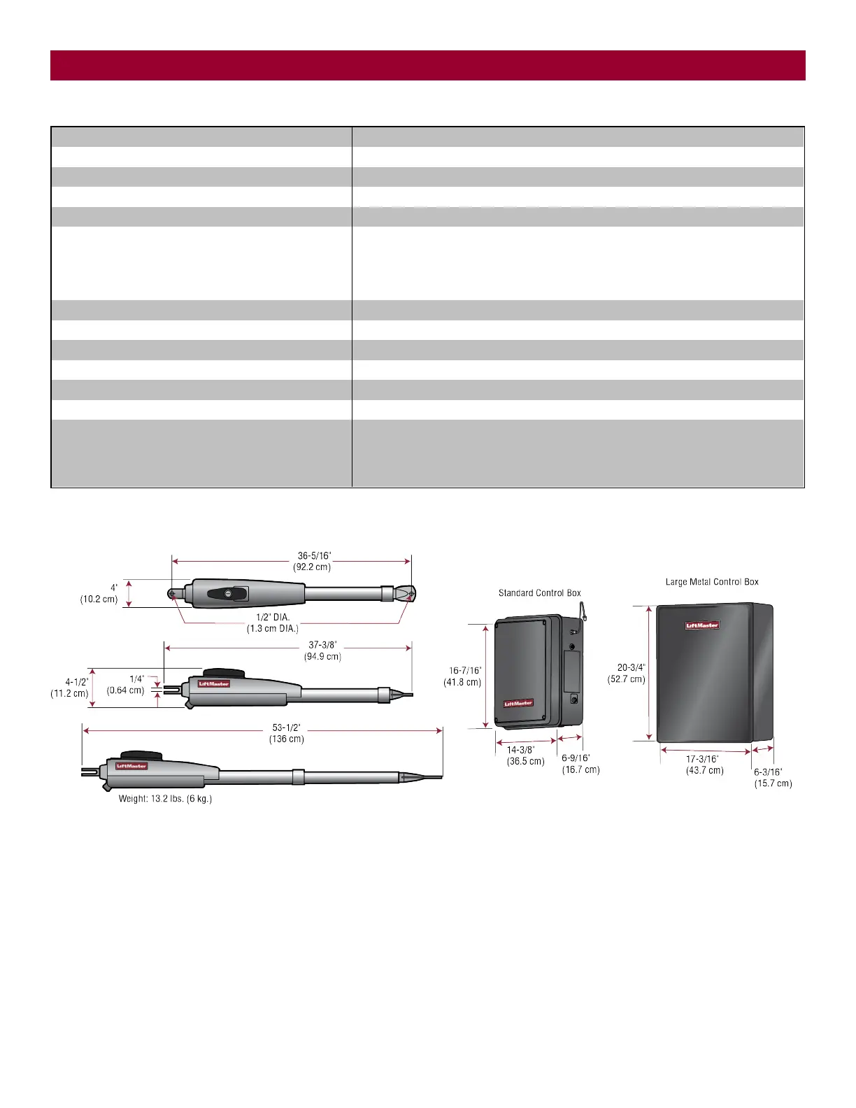 *Travel time and range are affected by A and B mounting dimensions, see INSTALLATION.