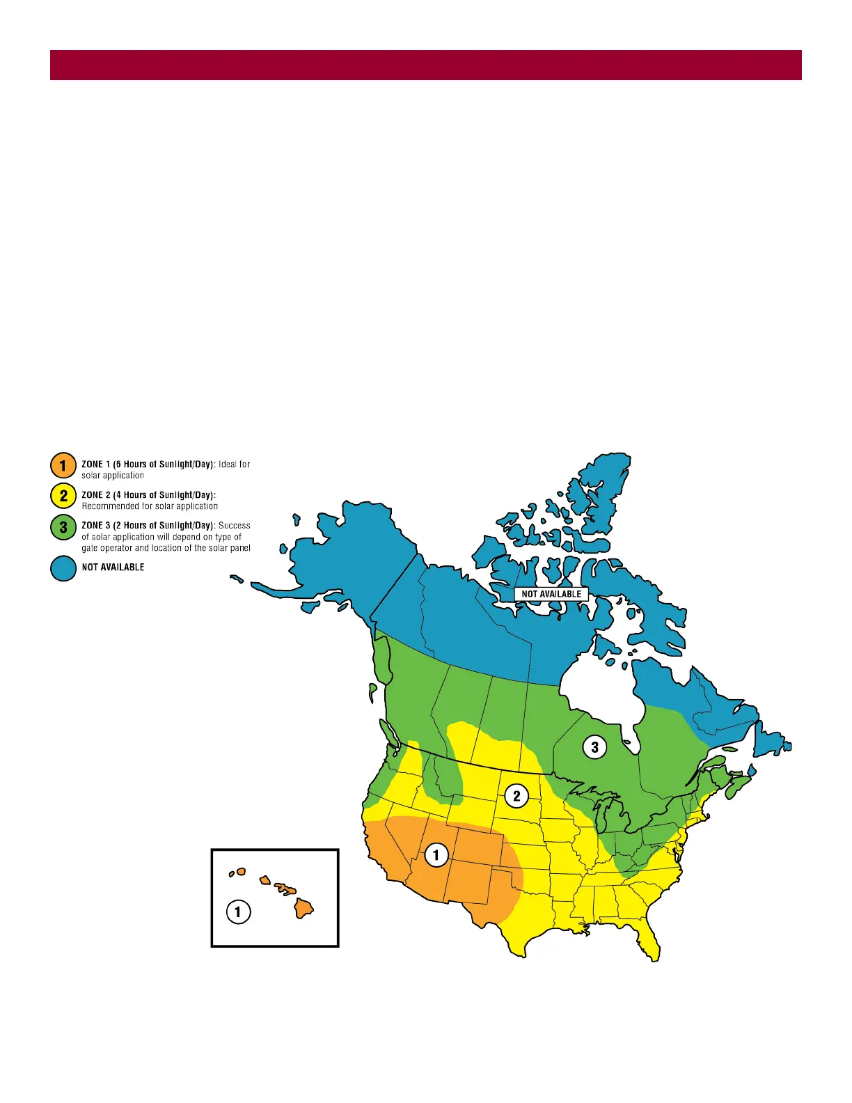 below. Local geography and weather conditions may require additional solar panels. Solar powered gate operator installations are not supported in