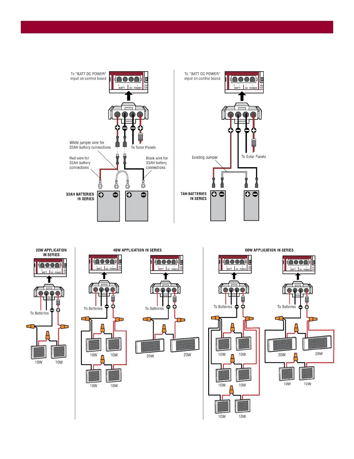 Solar panel applications require the Solar Harness Kit model K94-37236 (see Accessories).