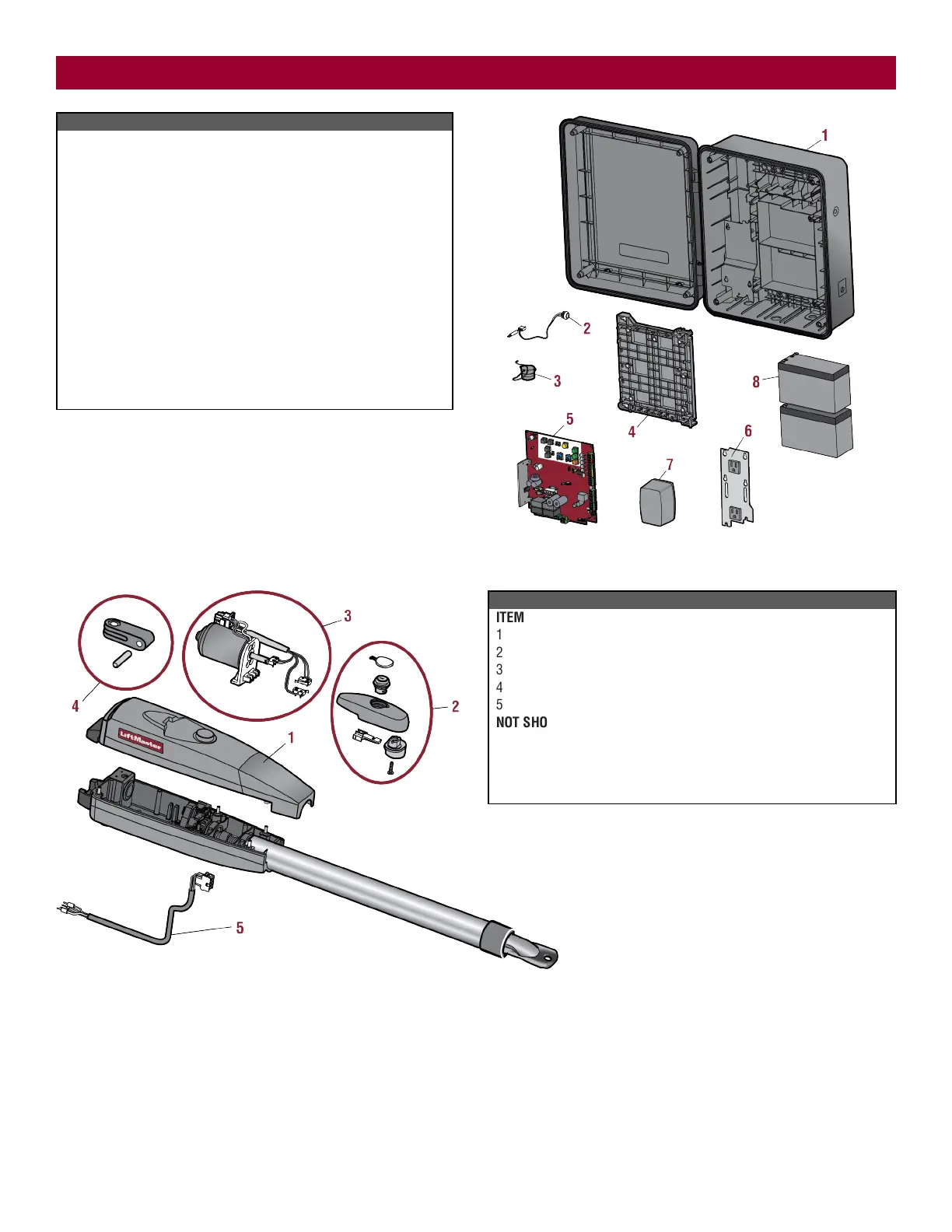 ITEM PART NUMBER DESCRIPTION