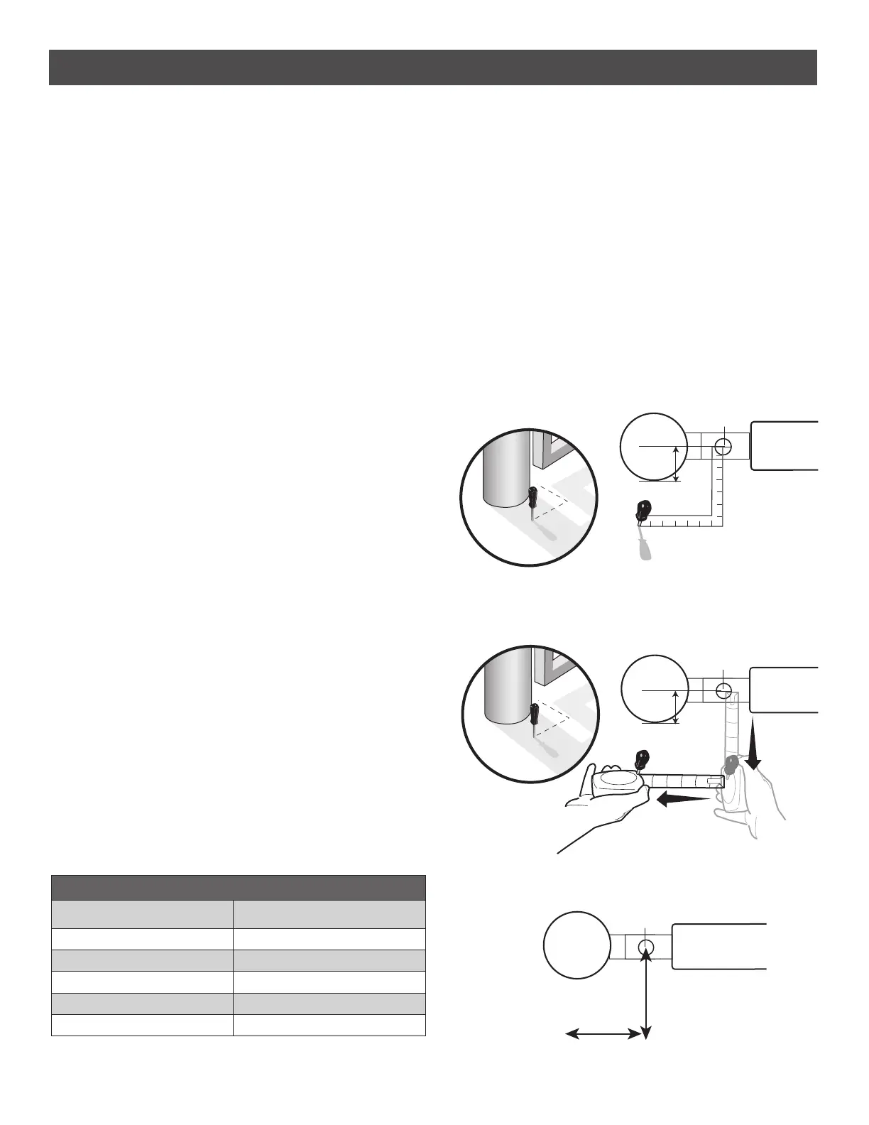 NOTE: There should only be a maximum of 4" (10.2 cm) from the center of the hinge to the edge of the post or column. If the distance is greater than