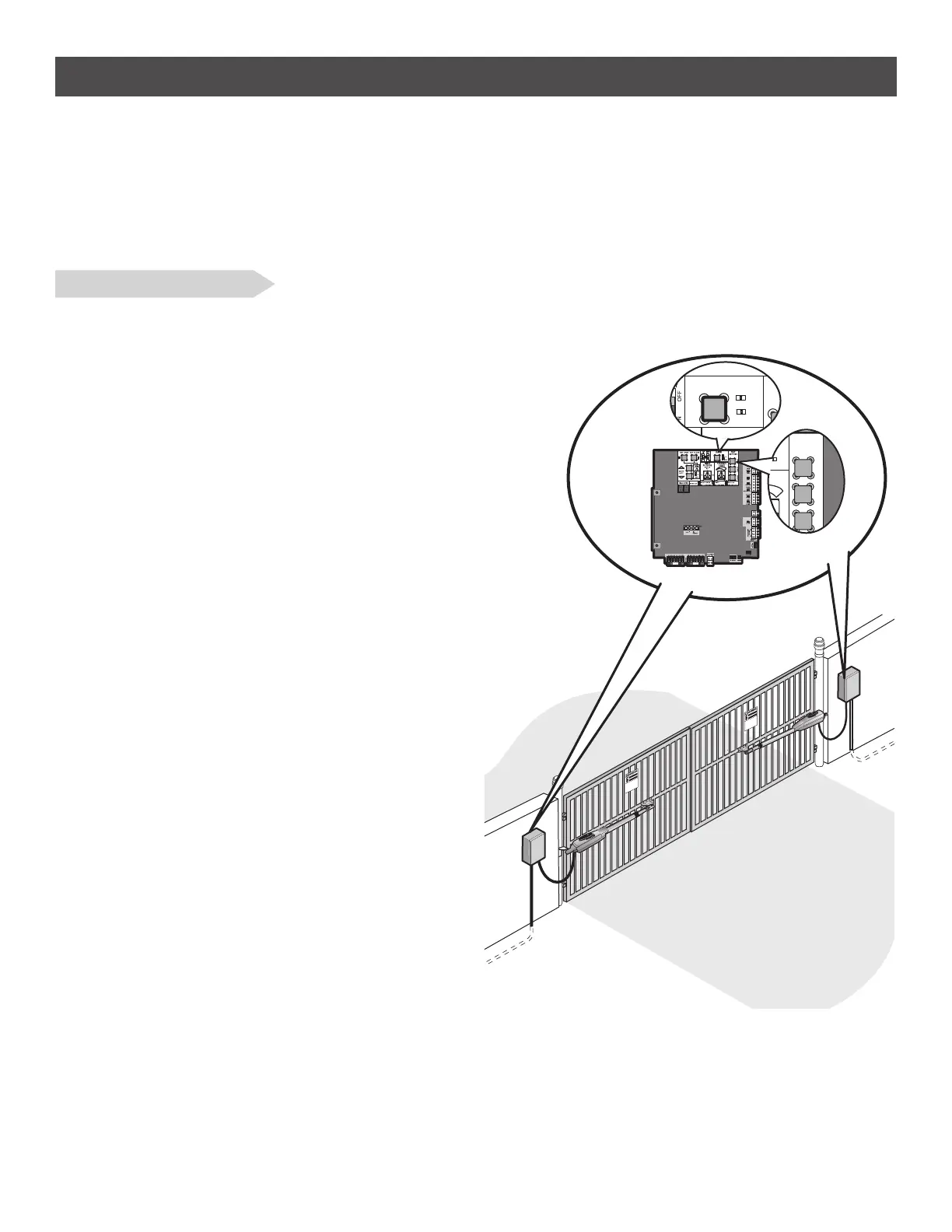 dual gates will require the installation of two control boxes, one for each operator arm.