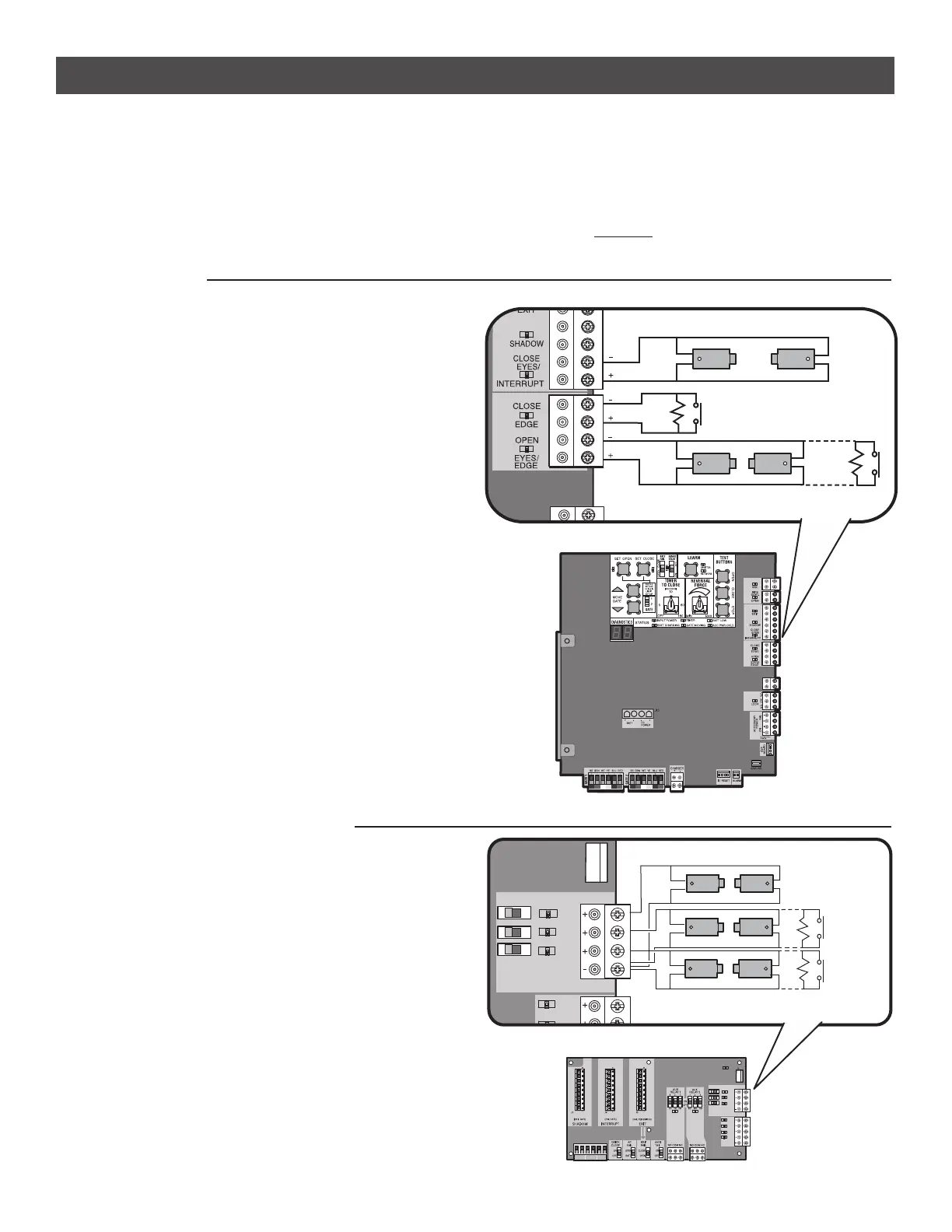 specific entrapment protection device manual for more information. These entrapment protection device inputs are for monitored devices, which