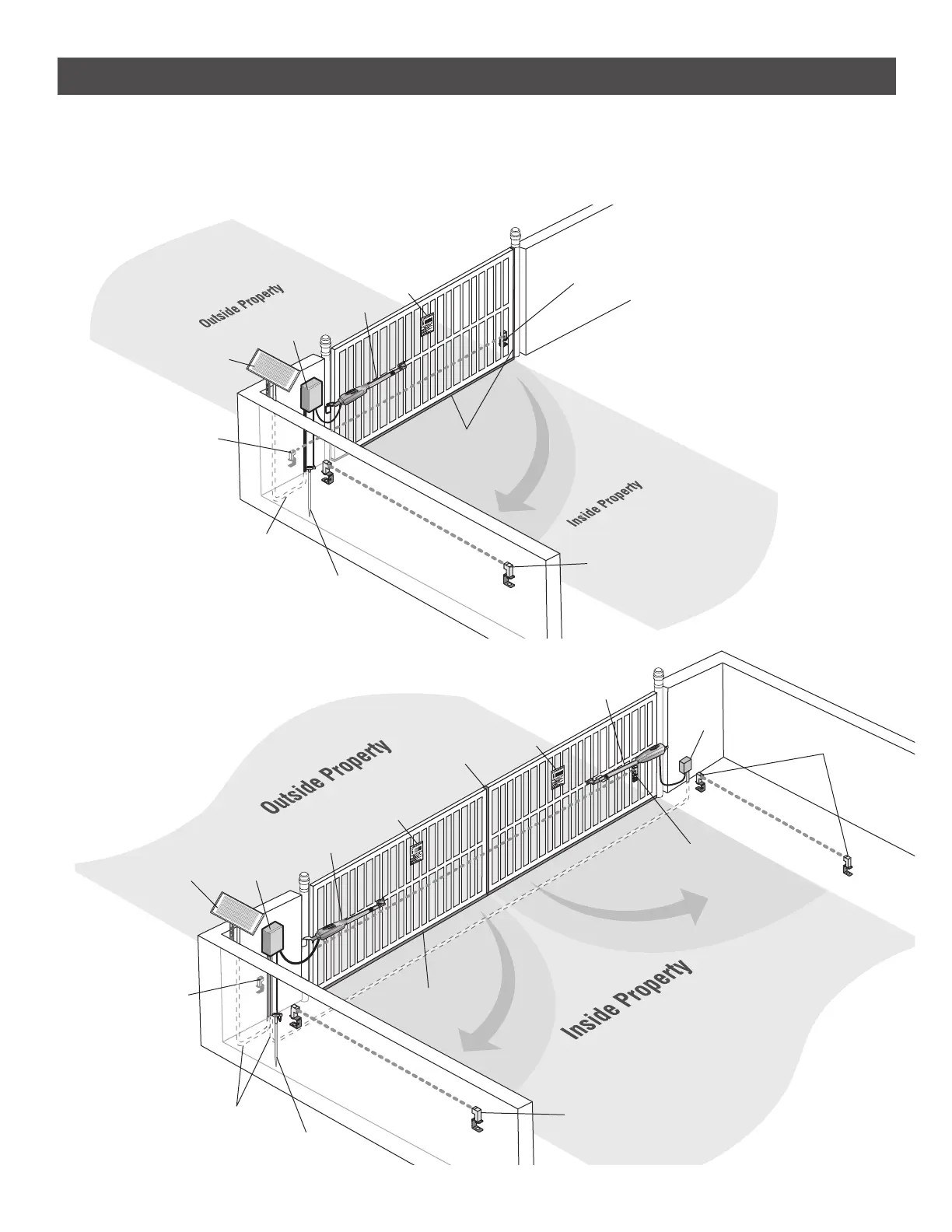 display a typical Left-Hand Gate installation with a pull-to-open bracket. For Push-to-Open applications refer to the Appendix.