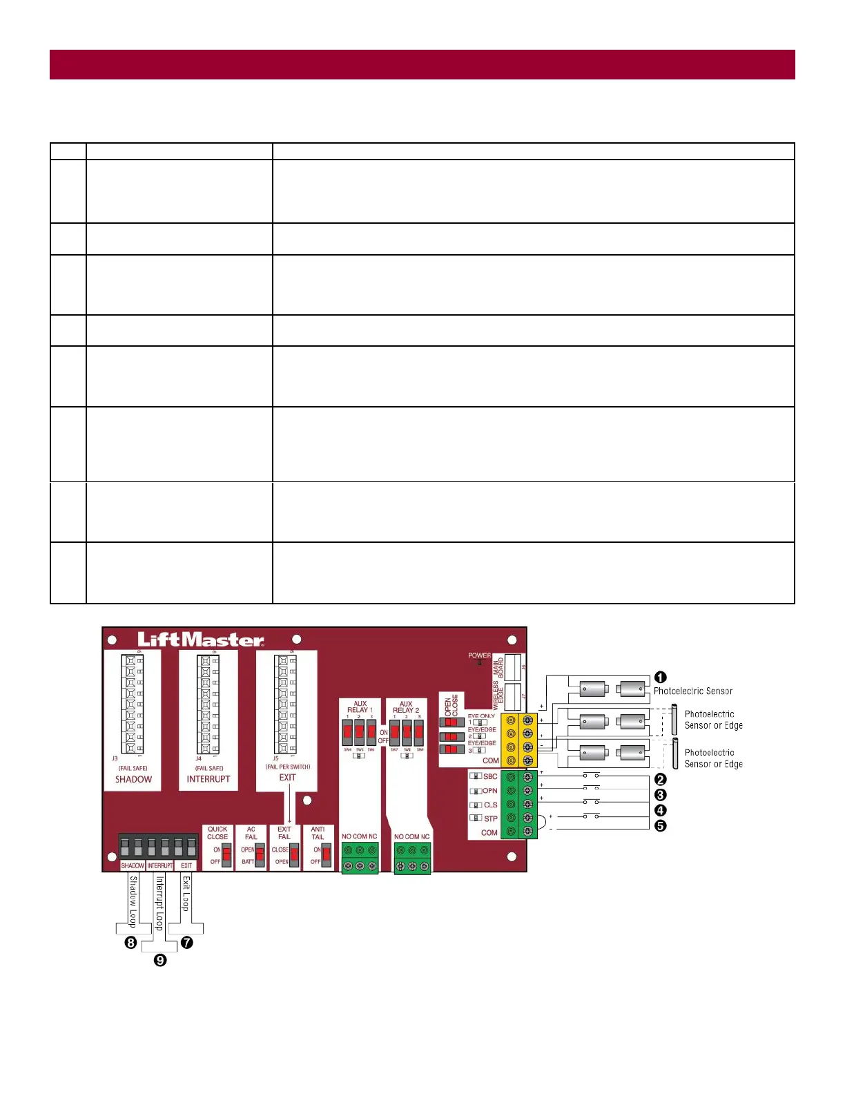 Refer to the chart below and the corresponding image for a description of the expansion board inputs.