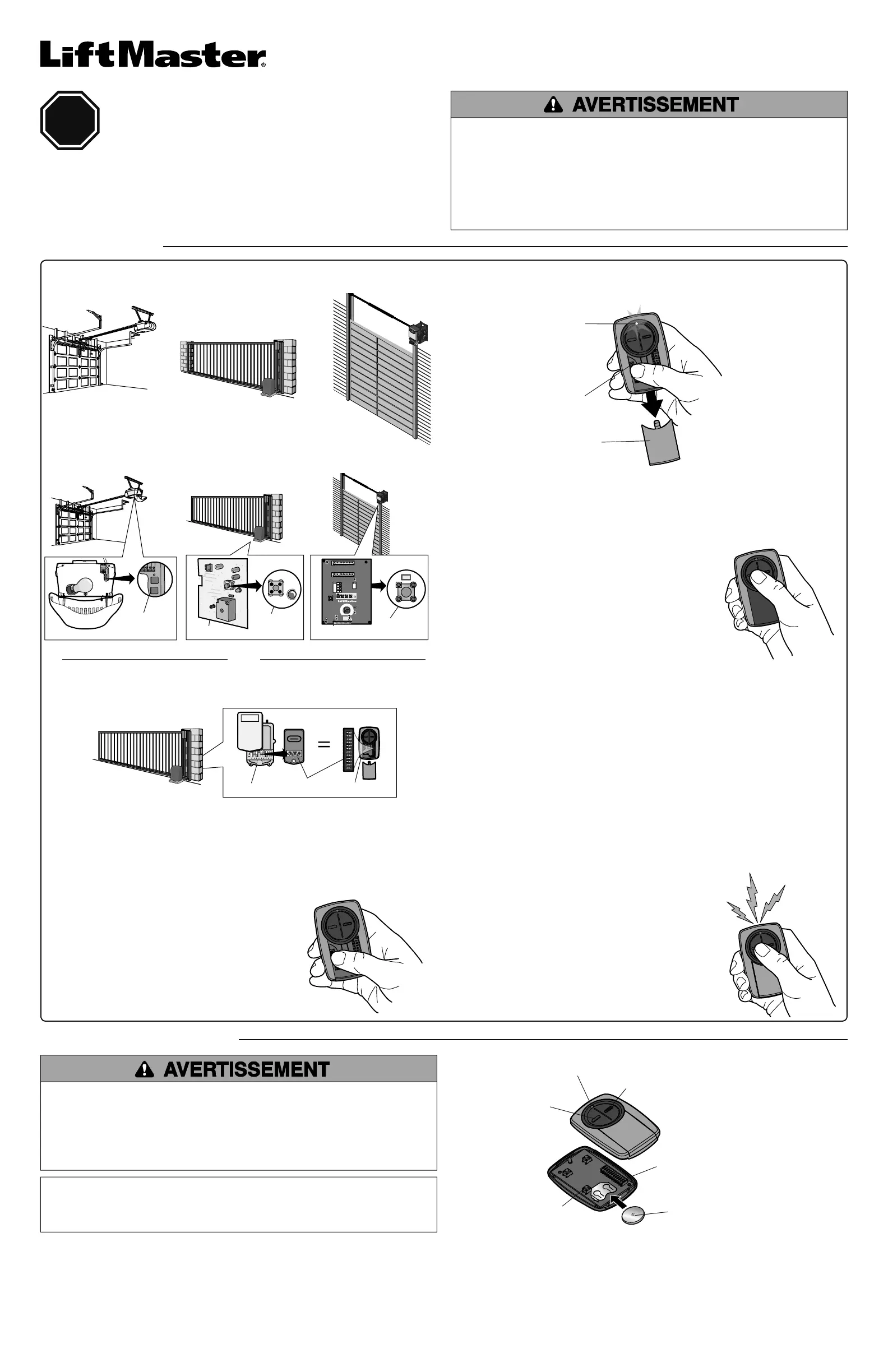 ouvre-porte de garage, un actionneur de portail ou de porte commerciale. Chaque bouton de la