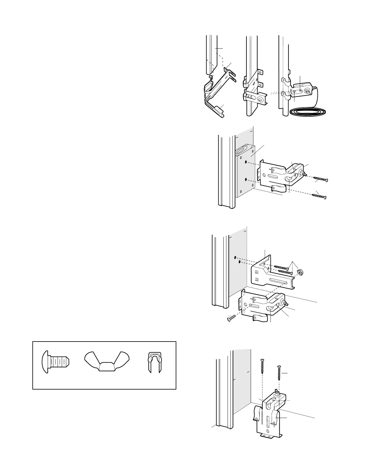 • Attach brackets to wall with lag screws