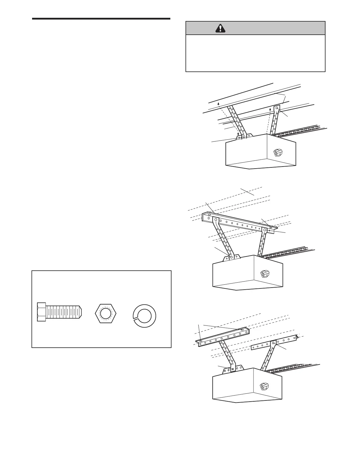 5. Fije el abre-puertas a los soportes colgantes con pernos