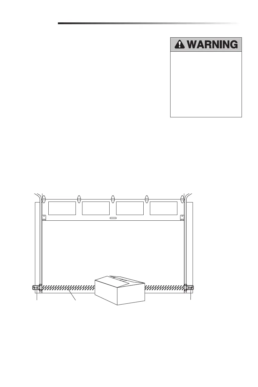 The invisible light beam path must be unobstructed. No part of the door (door tracks,