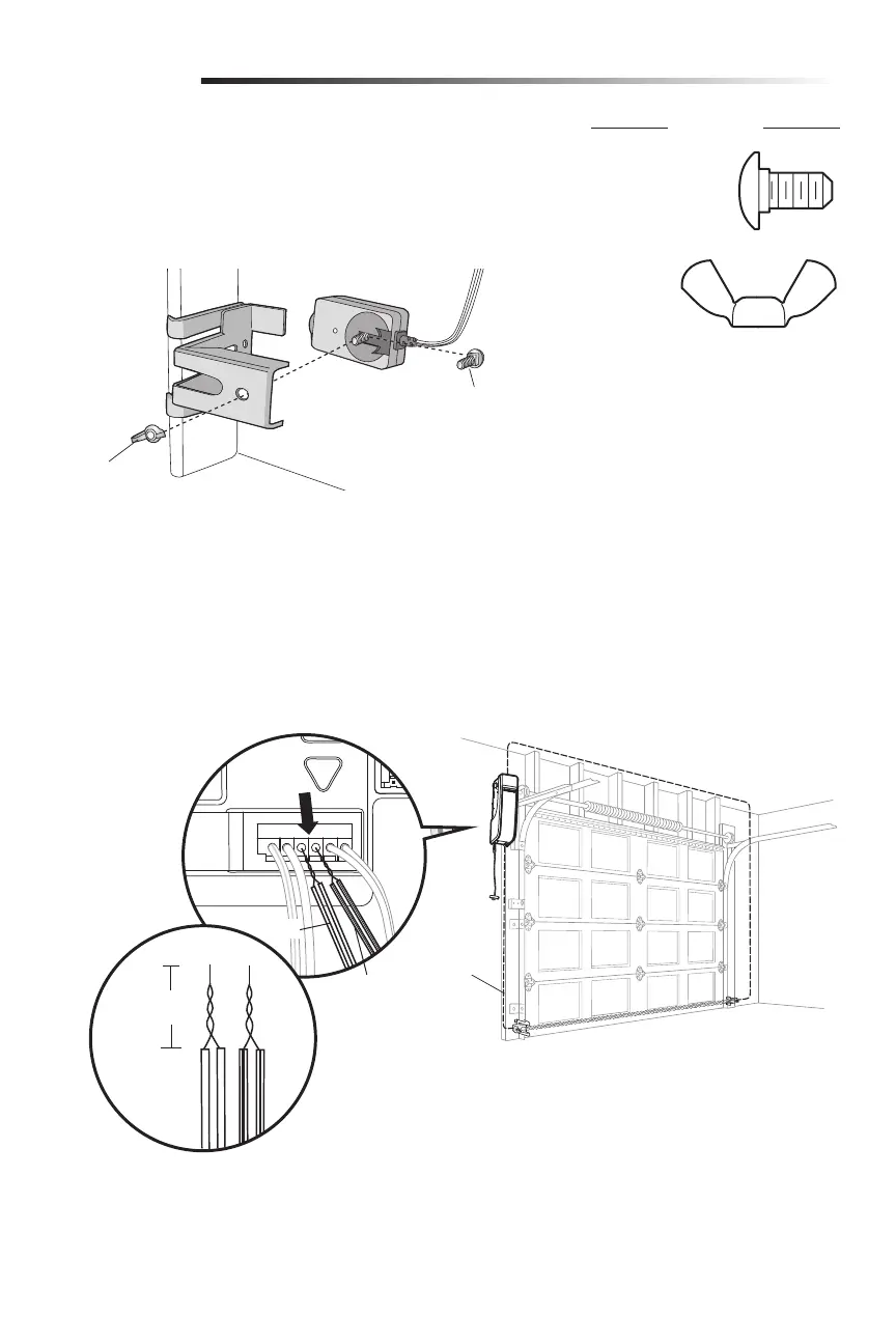 2. Use wing nuts to fasten safety reversing sensors to brackets, with lenses pointing