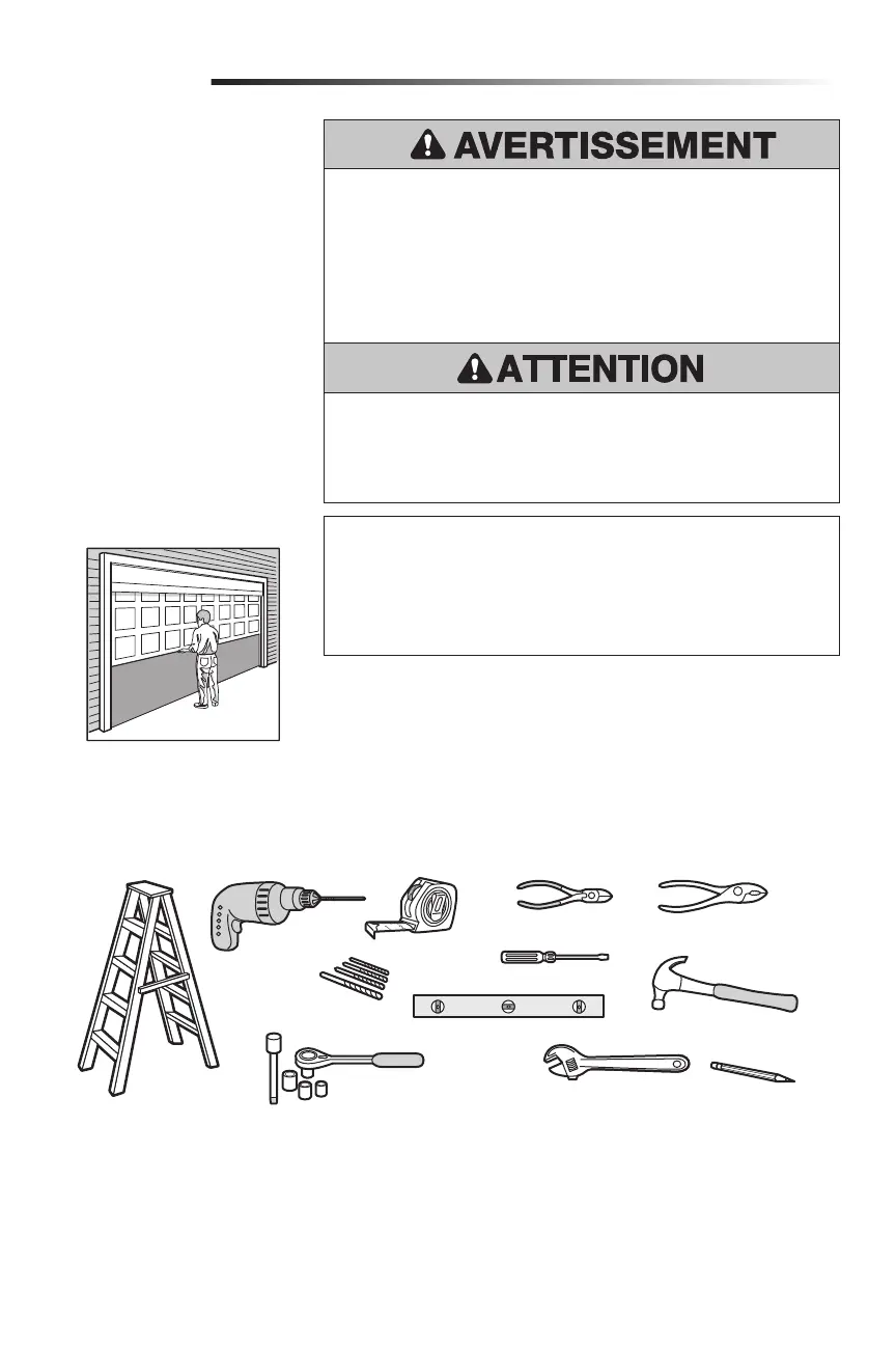 Pendant l’assemblage, l’installation et le réglage de l’opérateur de porte, les instructions feront appel à des outils manuels comme illustré